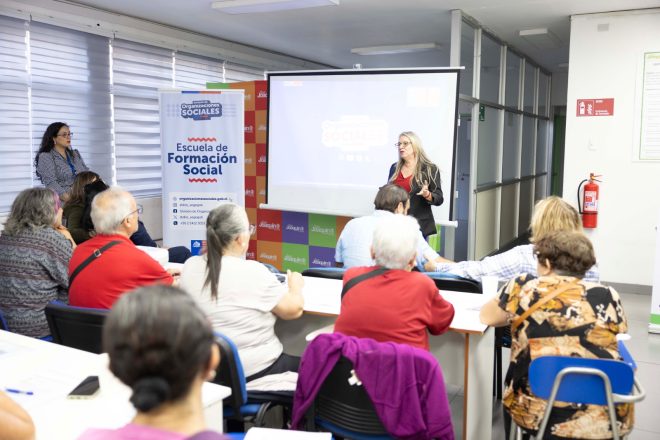 El equipo de la División de Organizaciones Sociales realizó en San Joaquín la Escuela de Formación Social con su módulo “Formulación, Rendición y Evaluación de Proyectos”, instancia formativa orientada a fortalecer las capacidades de dirigentes y organizaciones sociales. La actividad contó con una alta convocatoria de participantes interesados en adquirir herramientas prácticas para la gestión de iniciativas comunitarias y la participación de la subdirectora de la División, Macarena García-Huidobro.
